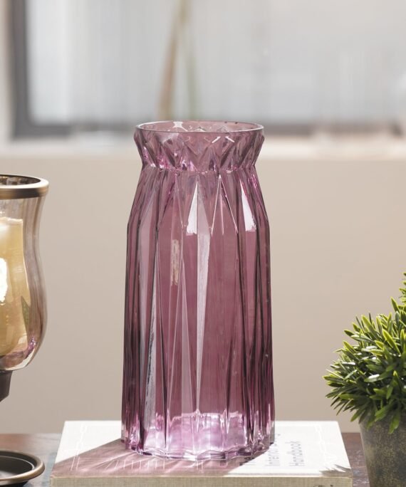 • Dark Purple Ribbed Tall Ceramic Vase - Small