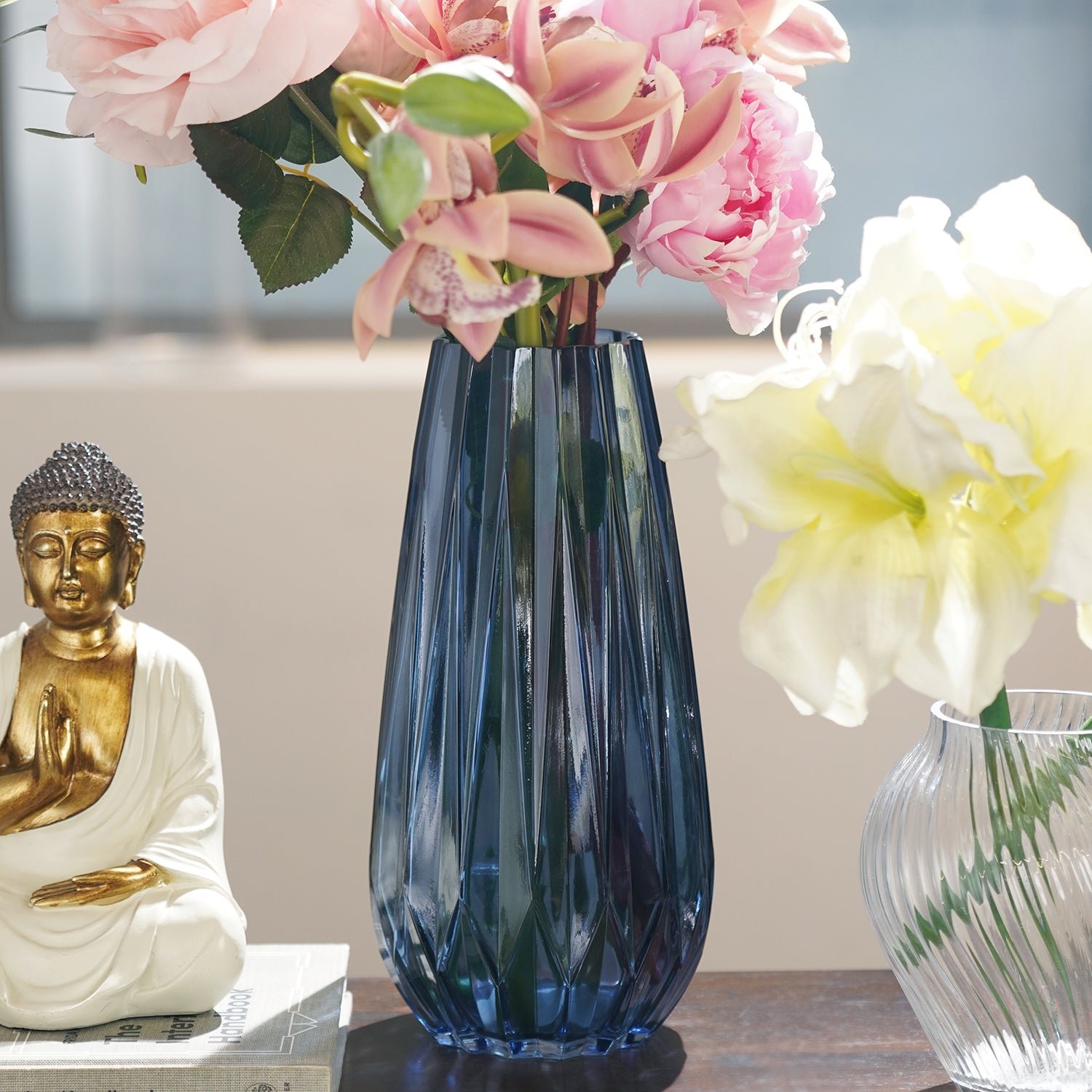Blue Diamond Textured Glass Vase – Medium