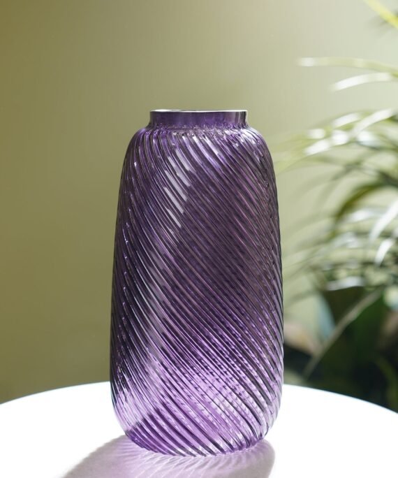 Dark Purple Ribbed Tall Ceramic Vase – Large